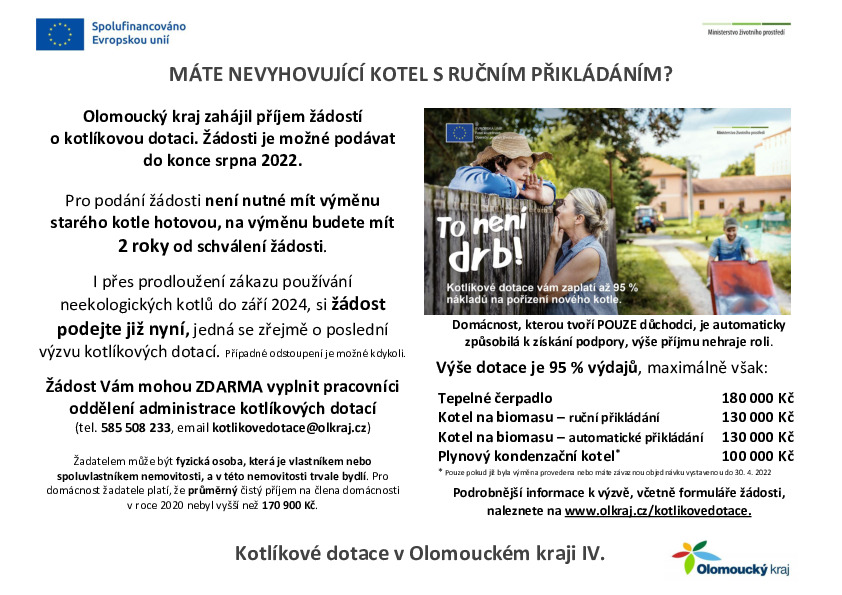 Úvod > Život v obci > Aktuality > Prodloužení lhůty pro příjem žádostí o Kotlíkové dotace v Olomouckém kraji